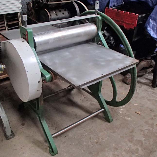 Kimber etching press, supplied by Hunter Penrose Littlejohn with extended bed 60″ long x 28″ deep (153cm x 71cm). Footprint 3′ x 3′ (90cm x 90cm) overall 5′ wide x 4′ deep (153cm x 110cm).