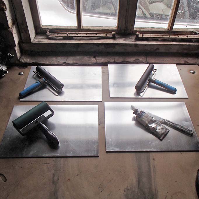 Aluminium ink plate surfaces, 2.5mm thick, 11.75″ x 8″ (300mm x 205mm).